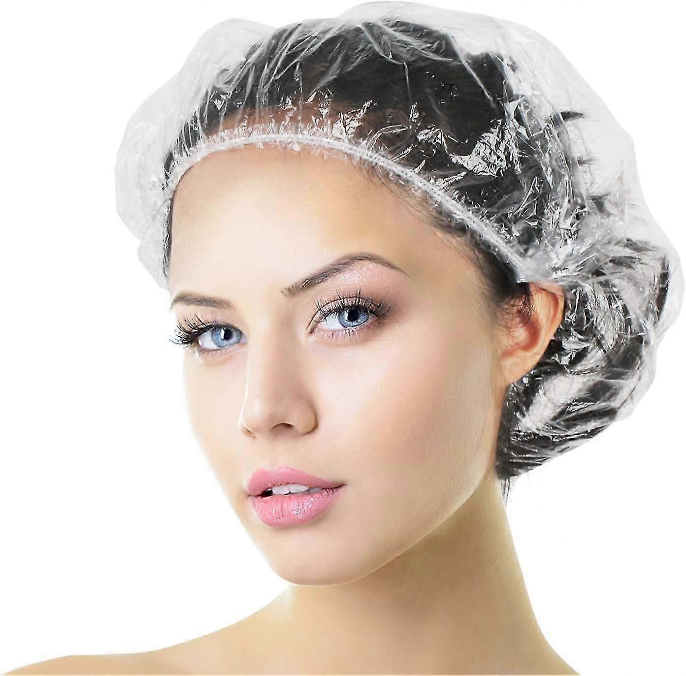 Shower Cap Disposable, 100 PCS Thick Waterproof Clear Plastic Elastic Hair Bath Caps, For women girls, Hotel and Hair Solon...