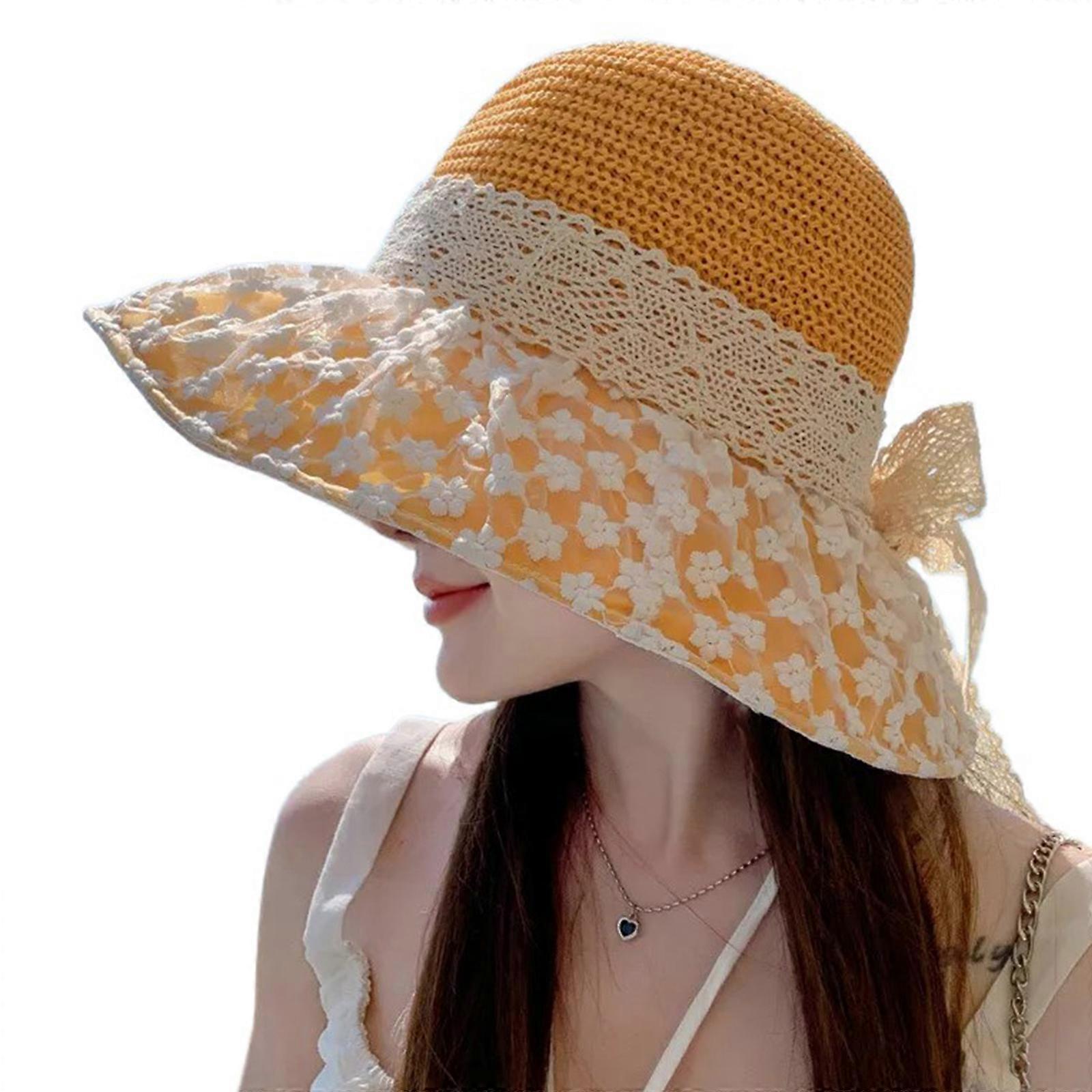Holiday Bucket Hat for Woman Lovely Flower Yarn Brims Hand Weaving Sunproof Bucket Hat Adult Spring Sunproof Beach Hat Yellow One Size