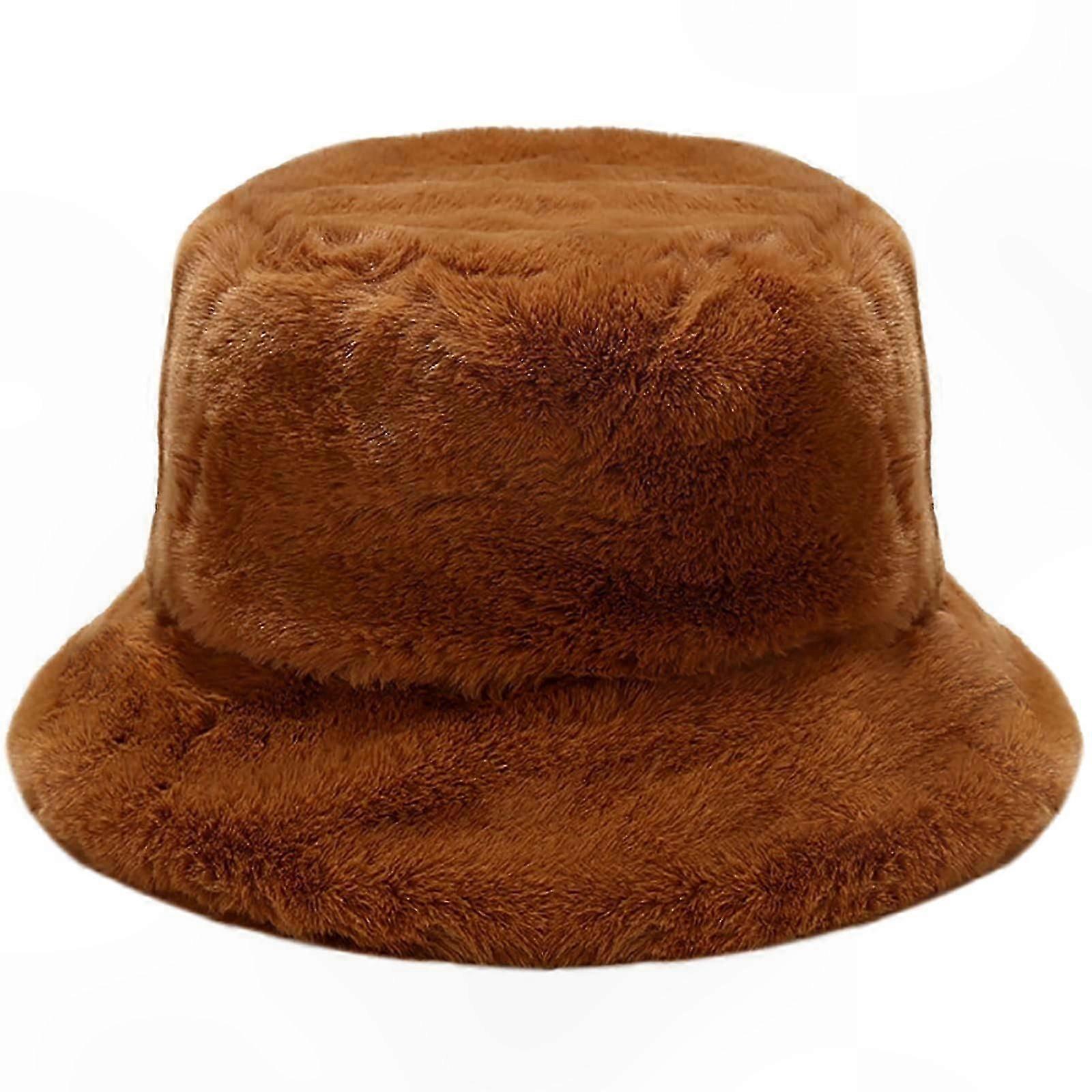 Plush Fleece Bucket Hat for Women, Warm Winter Fishing Hat with Fluffy Design