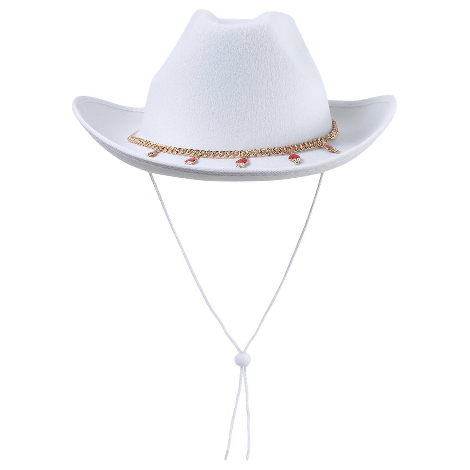 Cowboy Hat Mushroom Wide Brim Knight Hat for Disco House Cocktail Parties Vacation Simple Style for Comedian Actor White