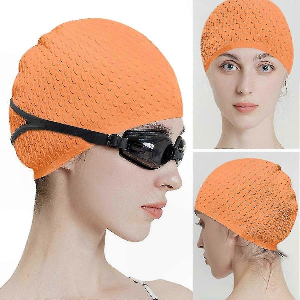 Orange Durable Silicone Swim Cap for Men and Women Stylish Waterproof Design