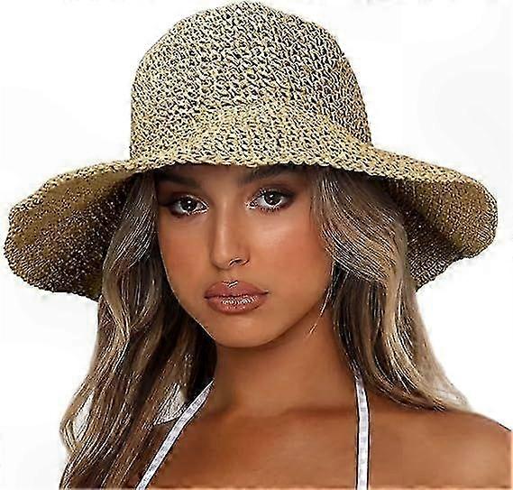 Women's Summer Sun Hat - Foldable Wide Brim Straw Hat with UPF50+ Protection for Beach and Outdoor Use
