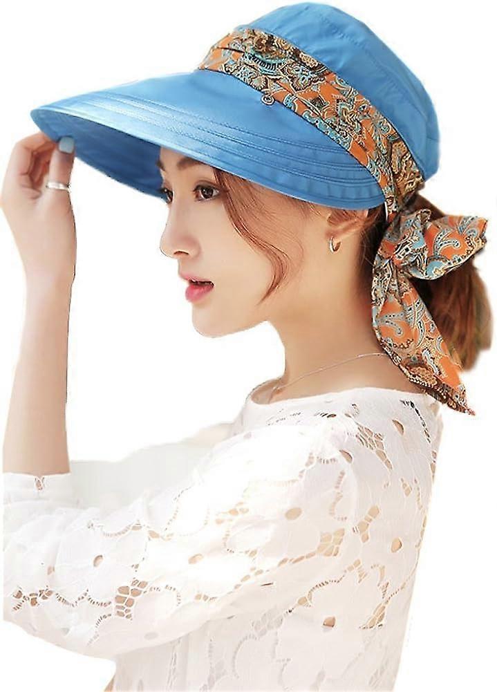 Women 2 in 1 Foldable Sun Hat With Neck Flap (Blue)