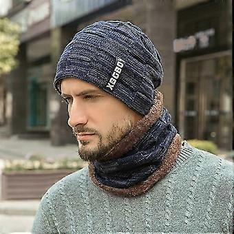 Mens Beanie Hat 2pcs Ski Cap And Scarf Winter Warm Woolly Hats Knit Ribbed