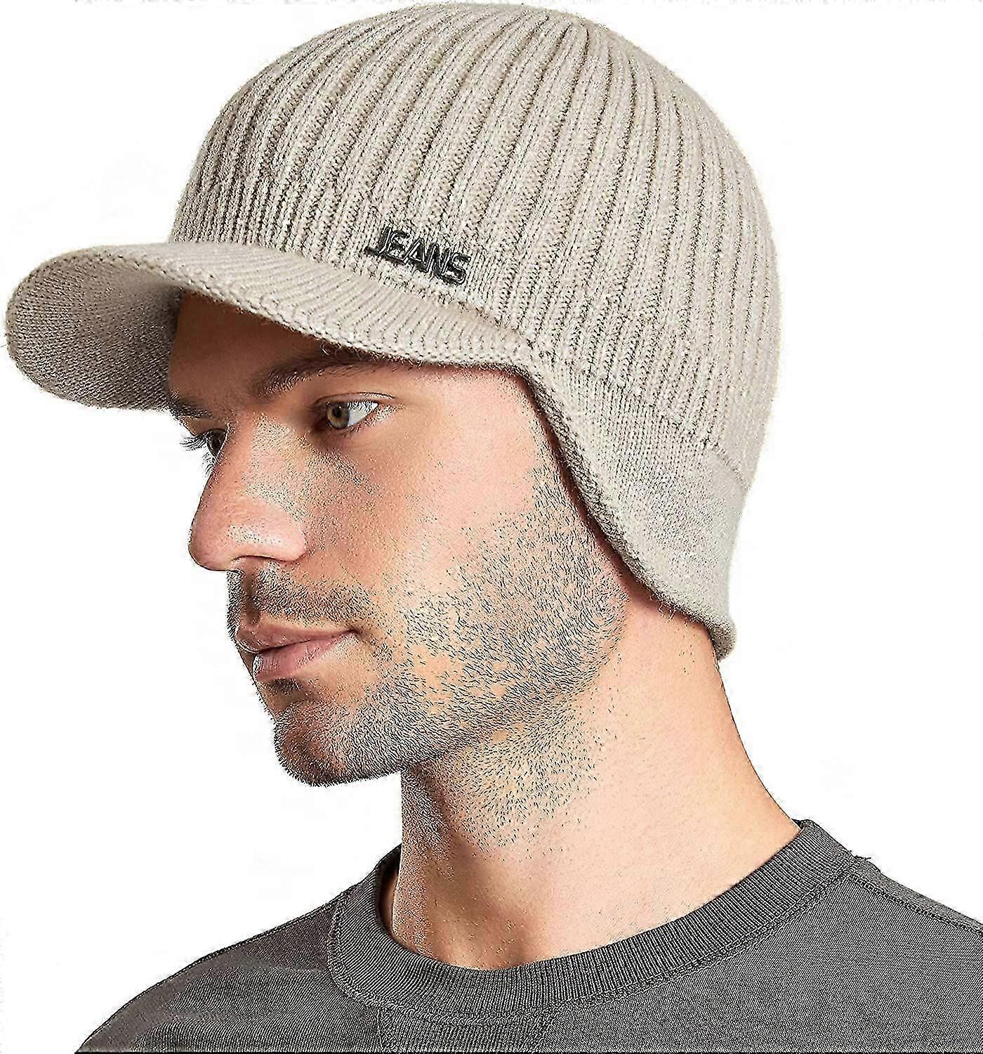 Winter Beanie with Visor for Men - Warm Knit Earflap Baseball Cap for Outdoor Sports