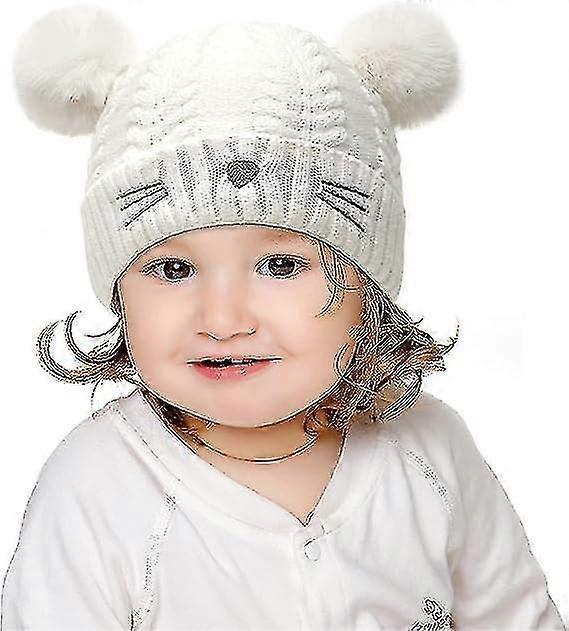 Toddler Beanie Hats Knitted Cat Winter Ball Hat Baby Embroidery Warm Hat Cotton Woolen Kids Hat