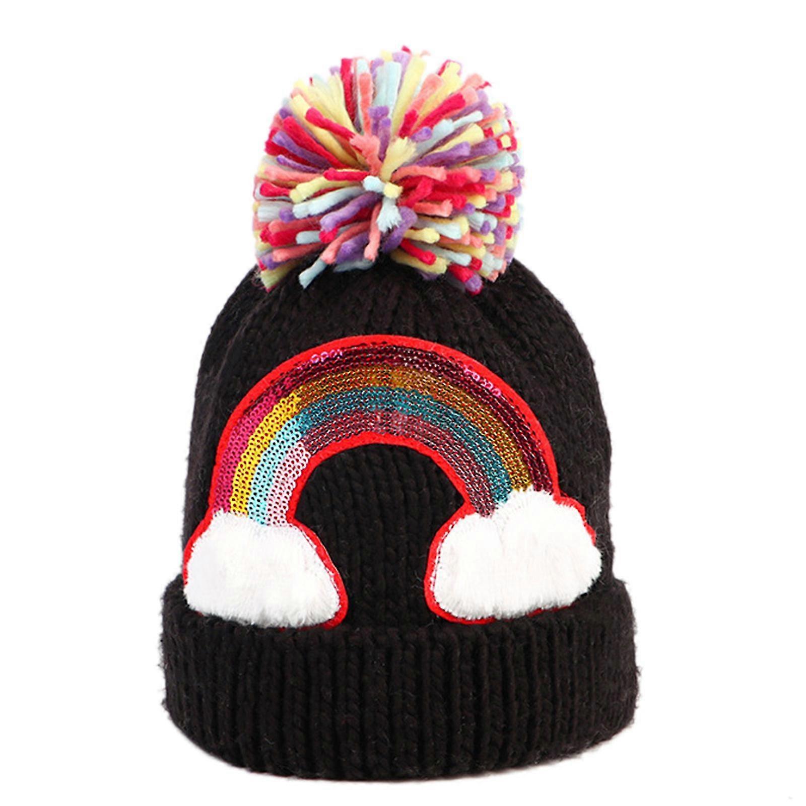 Woolen Hat Cute Rainbow Knitted Hat With Colorful Pompom Wild For Daily Wear