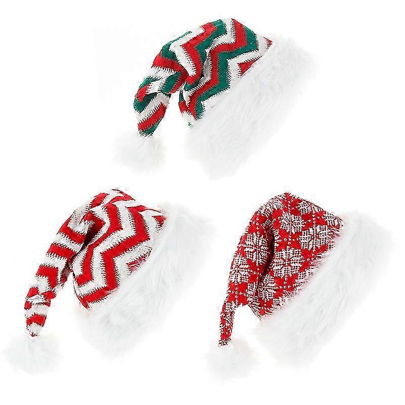 Kids Christmas Hat, 3 Knitted Santa Hats, Kids Christmas Hat, Plush Christmas Hats, Santa Hat Costume for Christmas New Year Party