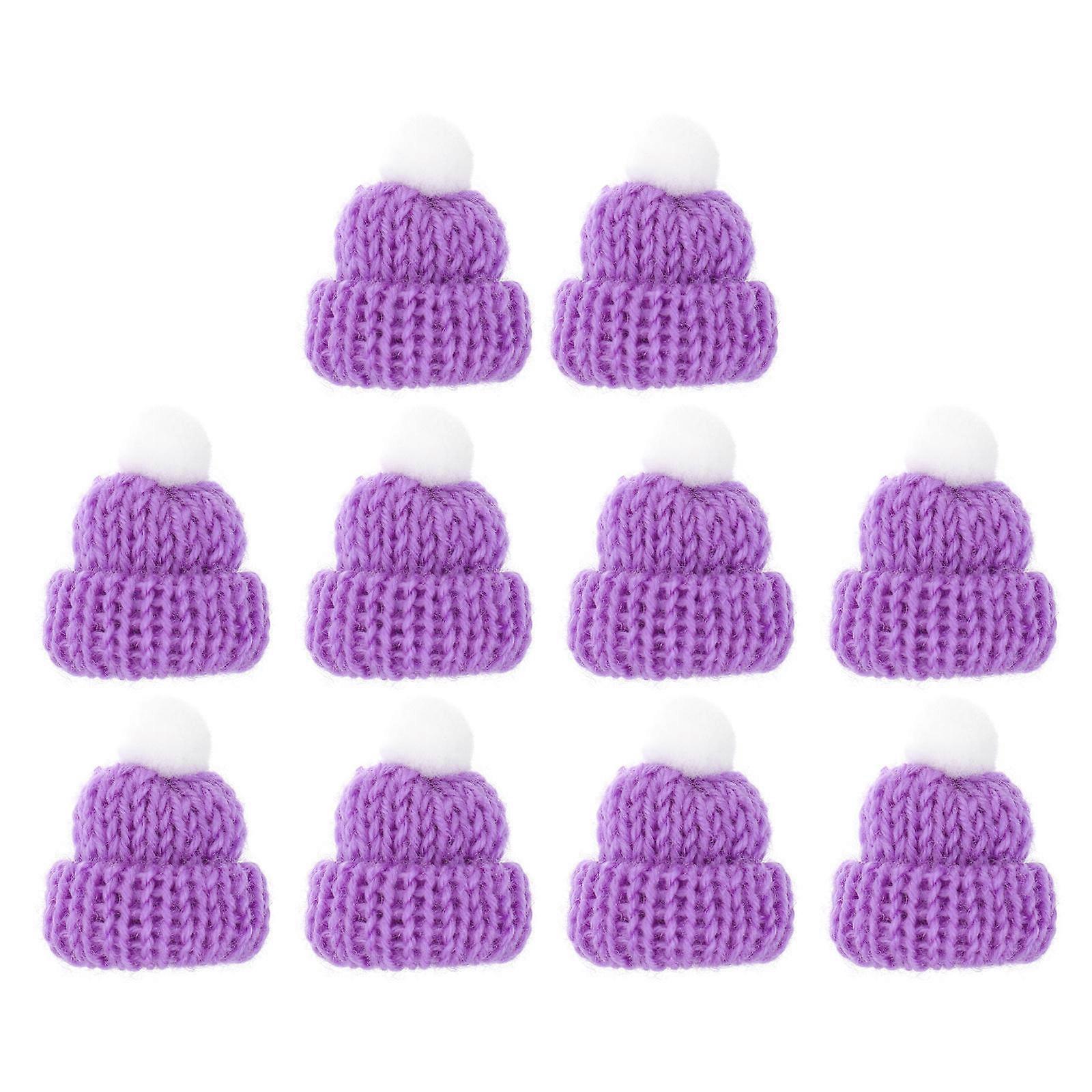 Christmas Hat Knitted Style Party Favors Purple 4x4x2cm Mini Doll Hats 10Pcs