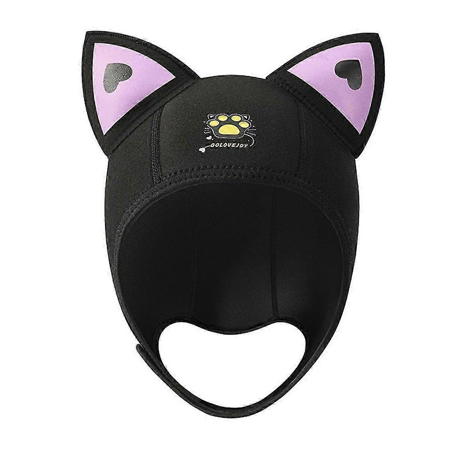 Women Cat Ears Diving Hood Waterproof Hat Wetsuit Hood Cap Swimming Cap with Chin Straps Black