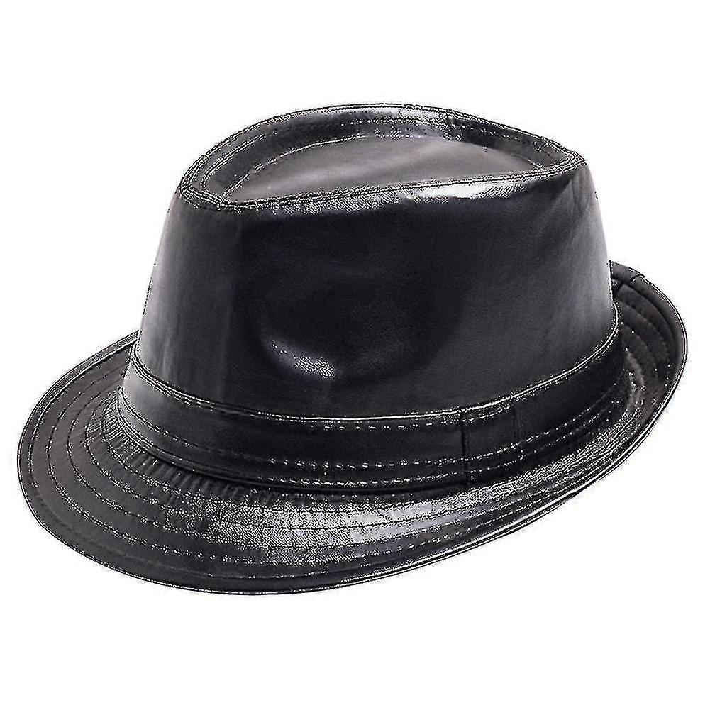 Fash Vinta Hat Man Fedora Hat Pu Jazz Cap With Lar Brim For Dinner