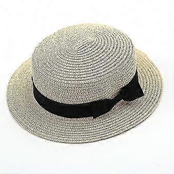 Women's Straw Boater Hat Wide Brim Round Flat Beach Sun Hat for Women