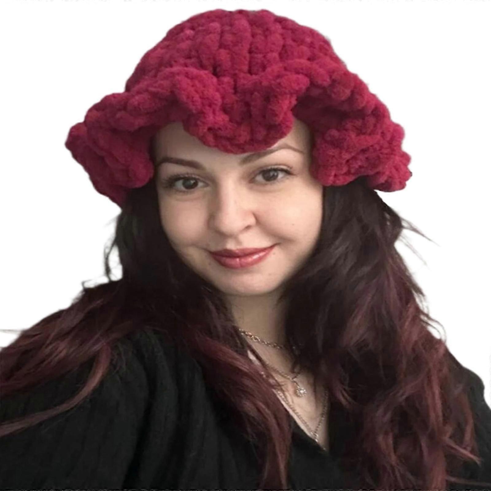 Girls Oversized Hat Handwoven Hat with Handwoven Flouncing for Vacations Photo Props Headpiece Handmade Hat Headgear rose Red