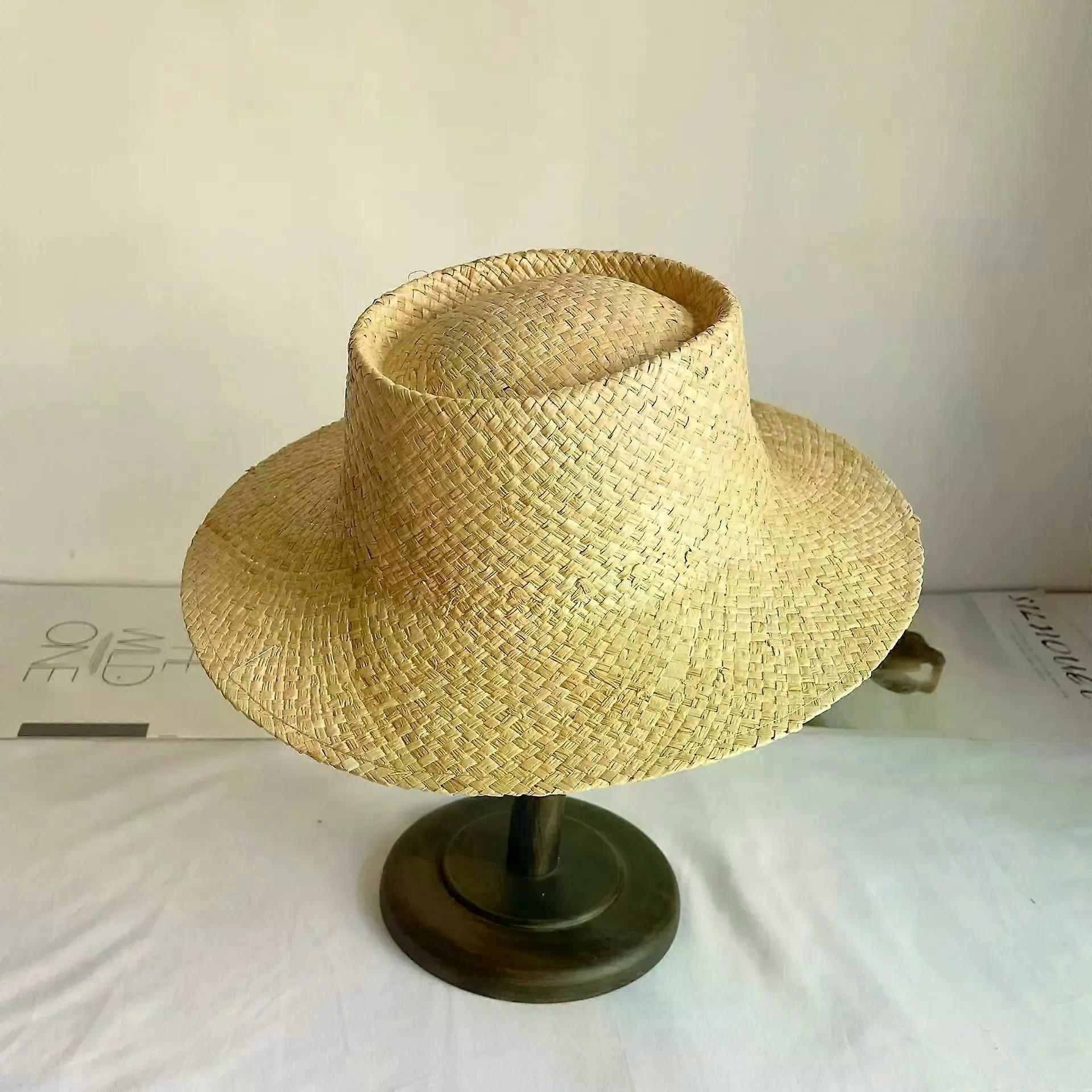 Large Brim Straw Hat Hand-woven Pattern Straw Hat Sun Protection Beach Sun Hat Women's British Retro Basin Hat