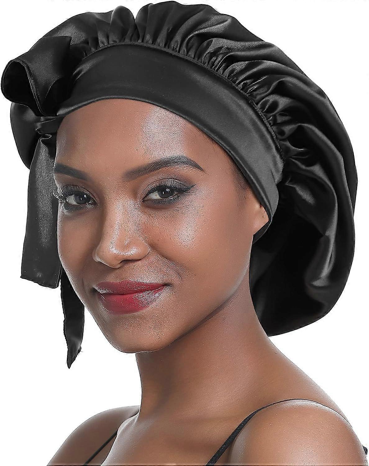 Night Cap Women with Hair Satin Cap Night Cap Wide Silky Band Elastic for Women with Long and Curly Hair