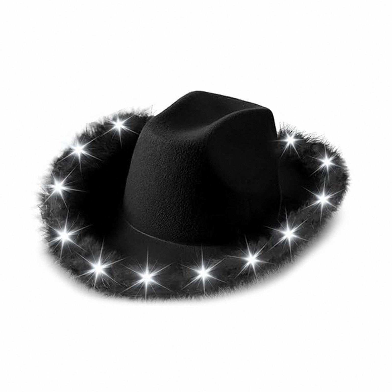 Glowing LED Hat with Wide Brim for Music Festivals and Stage Performances, Fashionable Party Accessory, White