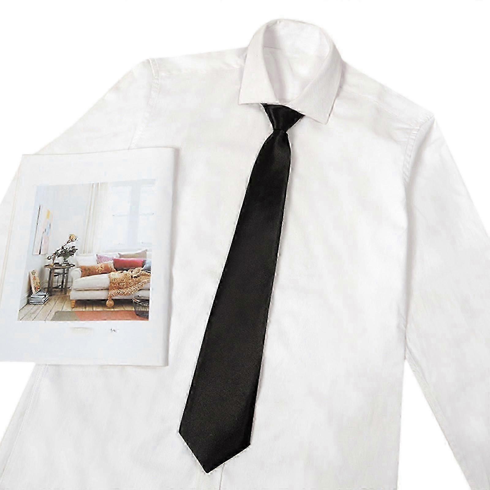 Pre-Tied Tie Zipper Necktie JK Uniform Tie Black Uniform Tie For Student Solid Color Black Necktie Skinny Black Tie Glossy Black 8 48cm