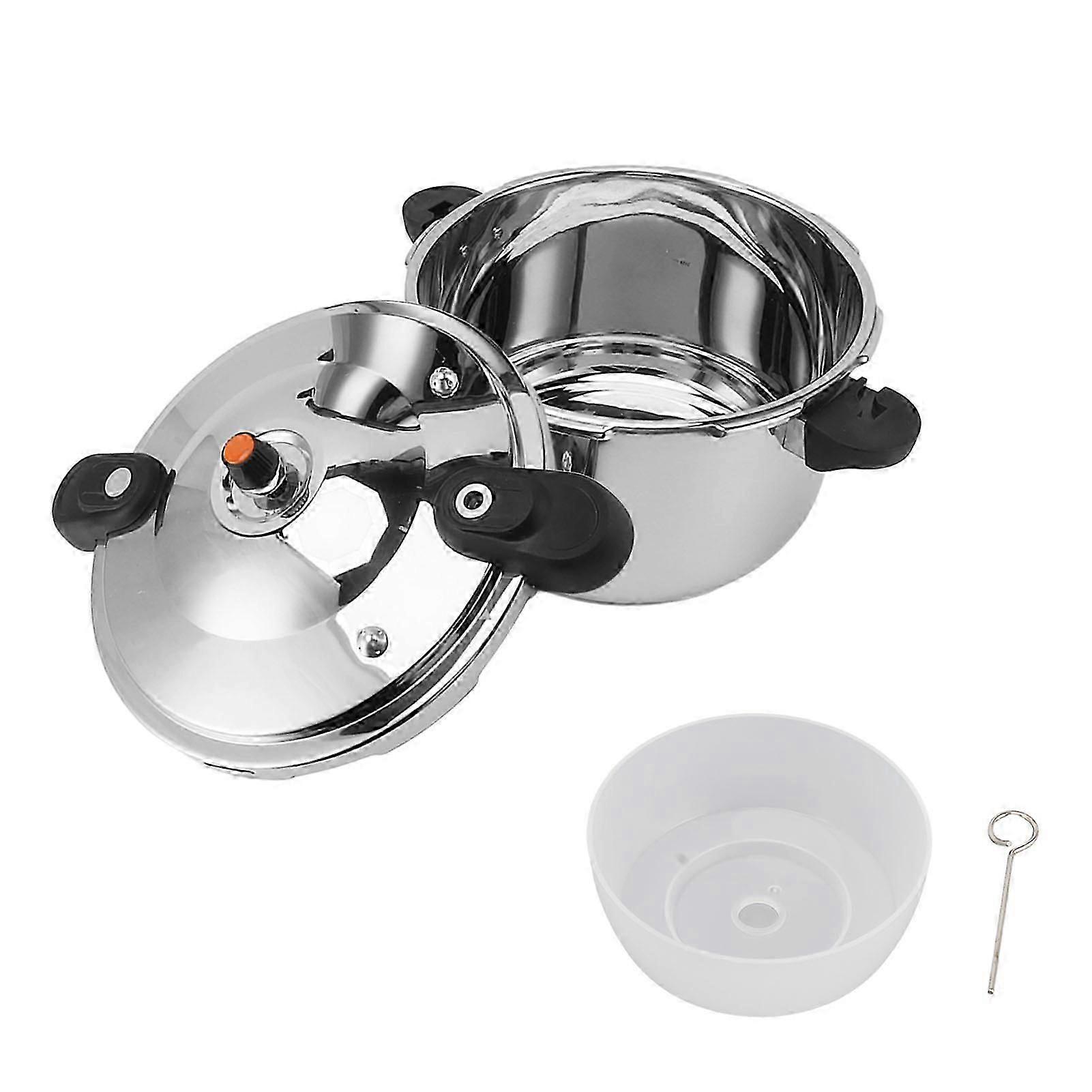 Features: 1Stainless Steel: Made with premium stainless steel this pressure cooker is resistant to high temperatures and can withstand long time use providing durability for your cooking journey. 2Efficient and Fast Cooking: The 80kpa pressure cooker cooks food under high pressure raising the boiling point of water and speeding up the cooking process. Compared to traditional stewing it saves time and retains more nutrients in the ingredients. And the thickened bottom provides even heating. 3Multi Functional Design: This pressure cooker is not only suitable for cooking rice and stewing soups but also for steaming boiling congee and cooking noodles providing convenience and versatility in the kitchen. 4Intelligent Protection: Equipped with a safety valve and pressure limit device this high pressure cooker can intelligently control the internal pressure ensuring the safety of the cooking process. 5Wide Compatible: The pressure cooker is compatible with both induction stovetops and gas stoves allowing for quick and efficient heat transfer. It is versatile and can be used on different types of cooktops. 6Easy Operation Lid: This pressure cooker features safety protection. When there is no pressure internal you can rotate the lid to open it. When there is pressure internal the red safety device will pop up and you cannot open it. And its dual handle gives you ease to move it. The detachable sealing ring and polished surface let you clean it more willingly. Specification: Item Type: Pressure cookerMaterial: Stainless steelCompatible: Induction cooker gas stove electric stove ceramic stovePressure: 80kpaSafety Feature:1. Intelligent red pressure indicator: When the pressure inside the pot gets 4KPa the red dot automatically rises and locks the lid.2. Safety pressure limit valve: Controls the pressure inside the pot at 80kPA. When the pressure gets 80kPA the valve automatically releases the pressure reducing the risk of explosion.3. Safety vent valve: Ensures that steam is released from the safety valve within a safe pressure range when the vent hole is blocked.4. Safety alarm valve: Emits an alarm when the pressure continues to rise.5. Silicone sealing ring: Prevents gas leakage and can also release pressure in case of extremely high pressure in the pressure cooker serving as explosion protection.6. Safety window venting: When the pressure inside the pot exceeds a certain limit the sealing ring partially releases gas through the safety window. Package List: 1 x Pressure Cooker1 x Lid2 x Accessory1 x Valve Note: Before use carefully check if the vent holes of the pressure limit valve are unobstructed to prevent blockage.