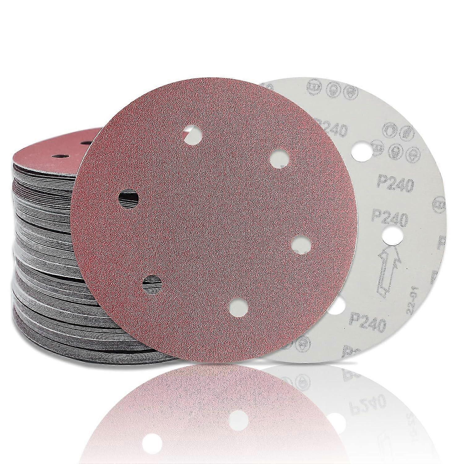 30pcs Sanding Disc 225mm Sanding Disc (5x 40/60/80/120/180/240 Grit) For Long Neck Sanders, Drywall Grinders 6 Round Holes Sandpaper
