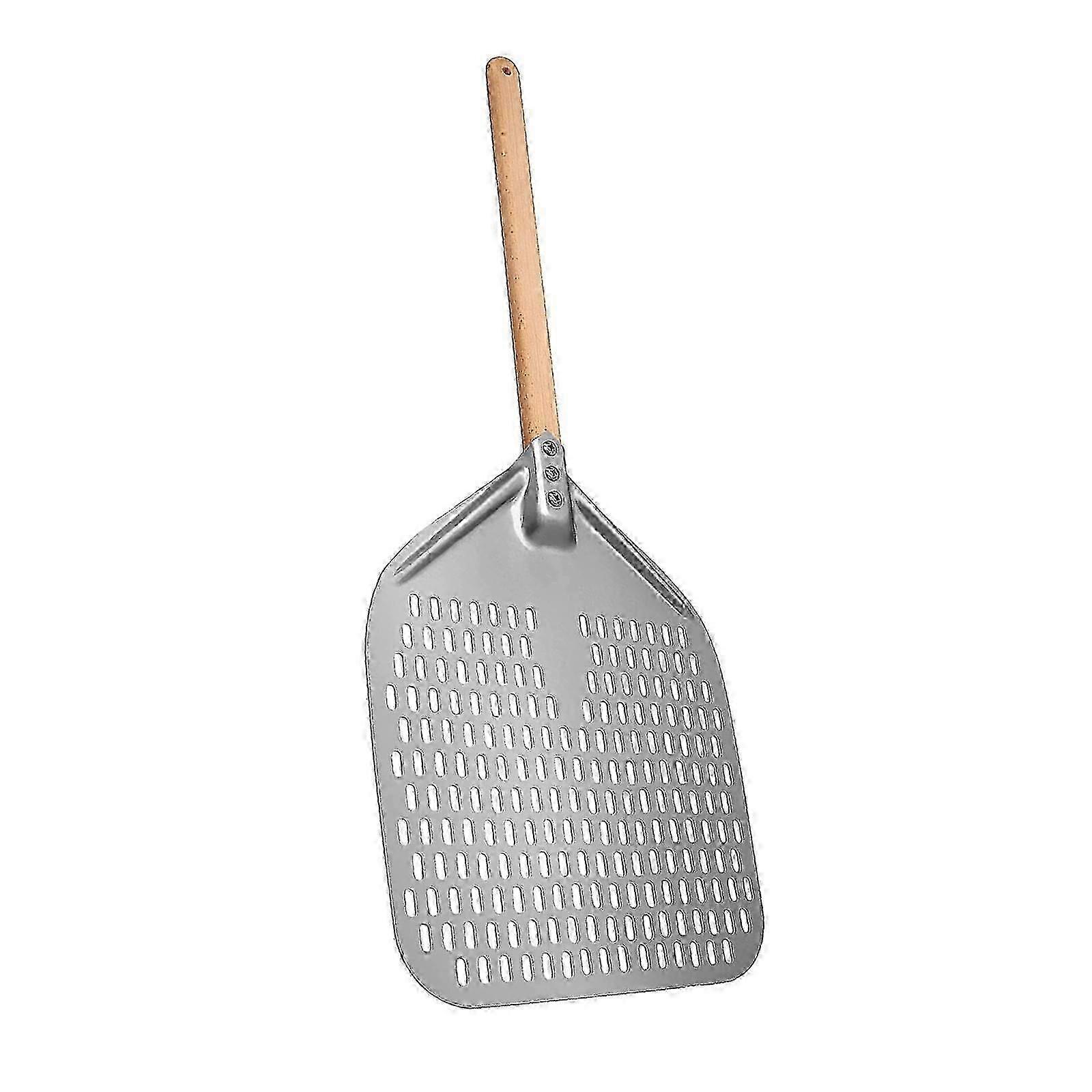 Outdoor Pizza Peel with Wooden Handle Aluminum Alloy Baking Shovel for Wood-Fired Oven BBQ Cooking Tool