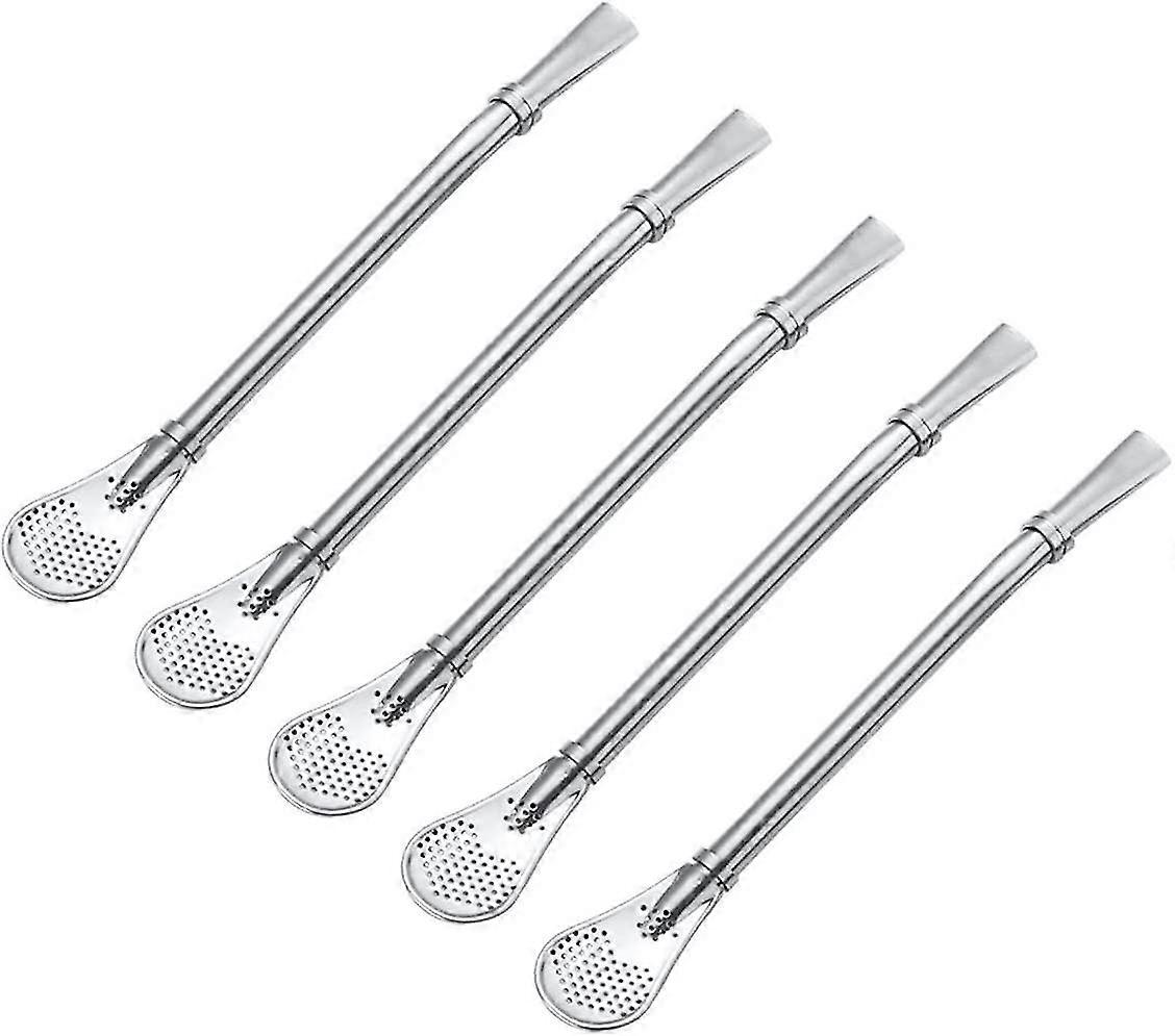 Stainless Steel Straw for Mate Tea, Straws for Mate, Spoon Straws, Silver Set of 5