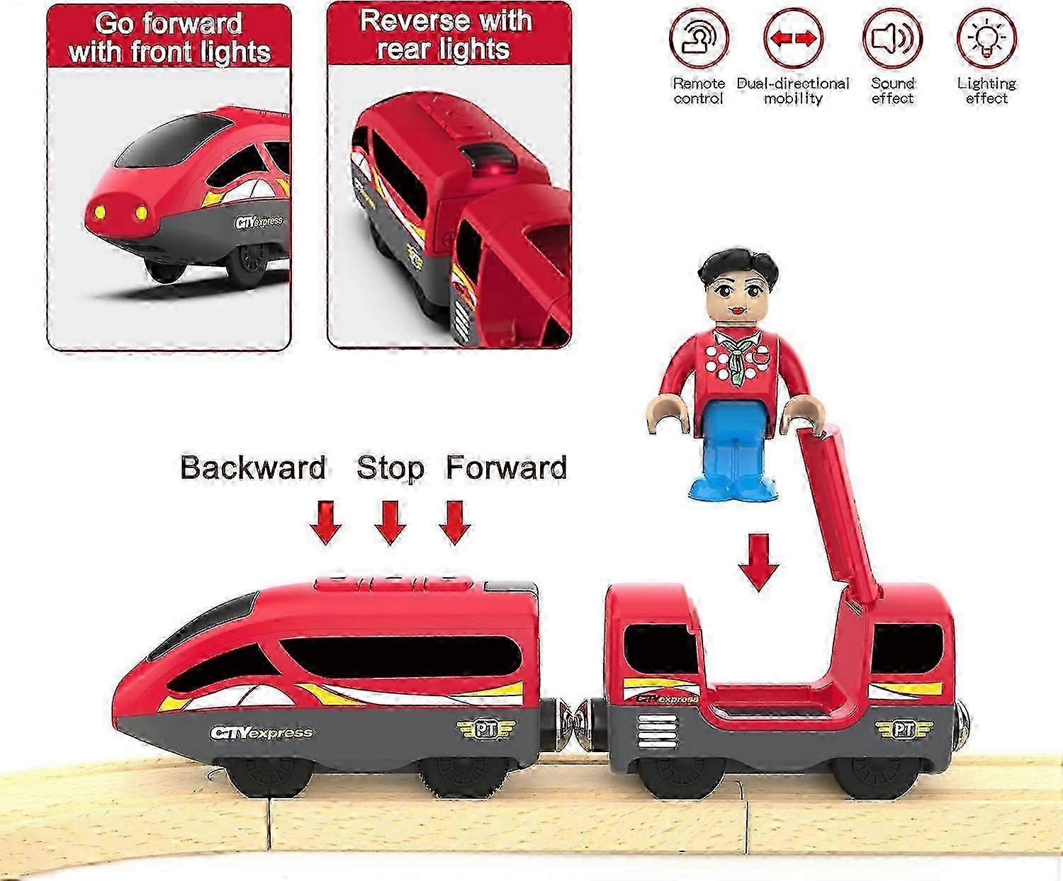 Motorized Train for Wooden Track, Remote Control Train with Magnetic Connection, for Toddlers, Compatible with Thomas, Brio , Red