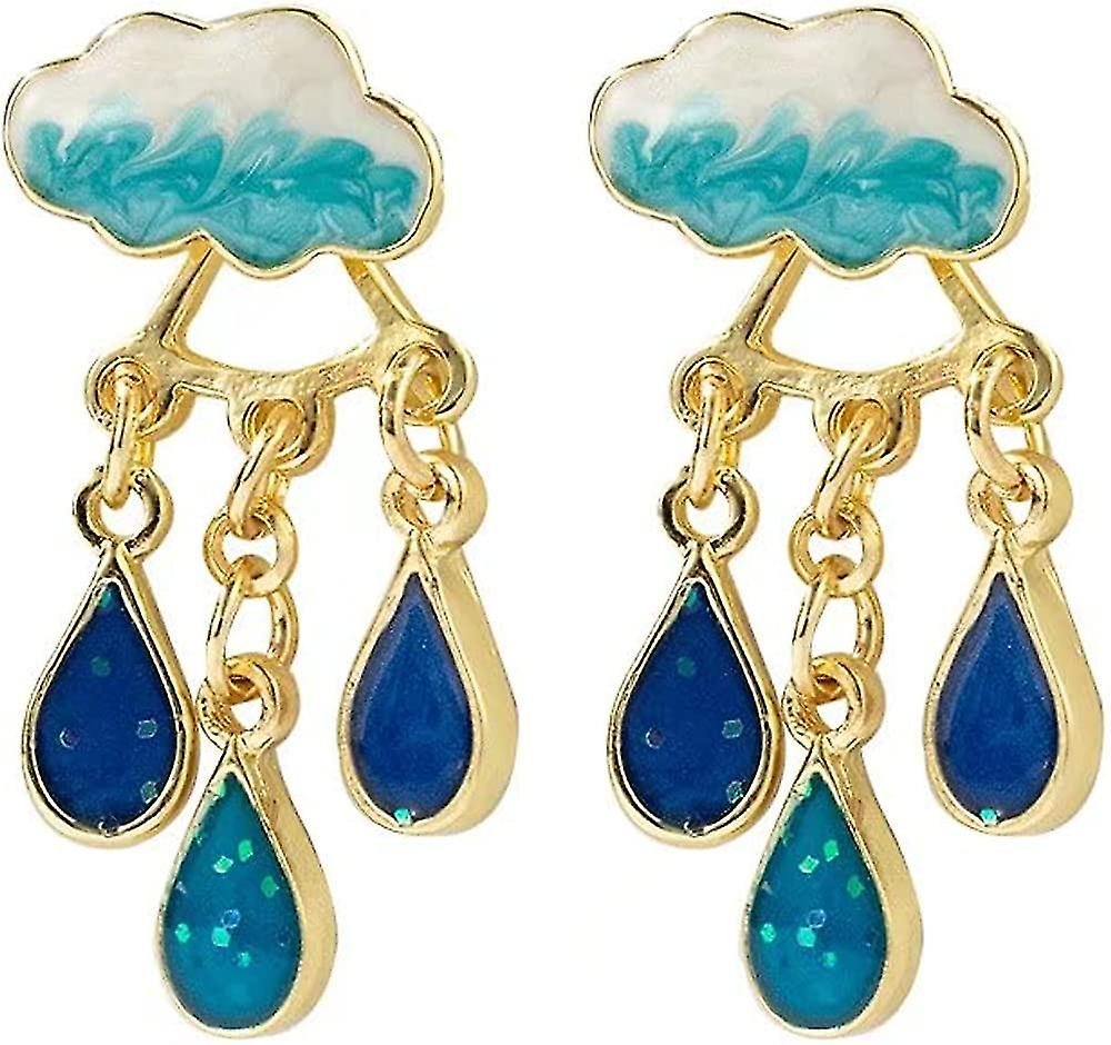 Raindrop & Rainy Cloud Earrings Gold Jewelry Ear Jackets For Women Girls Hand Drawn Enamel Earrings Jewelry