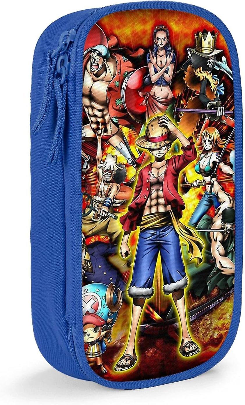 One Piece Monkey Luffy Pencil Case 3D Custom Printing Large Capacity Double Zipper Pen Bag For Office School Travel-Blue SAOE015253