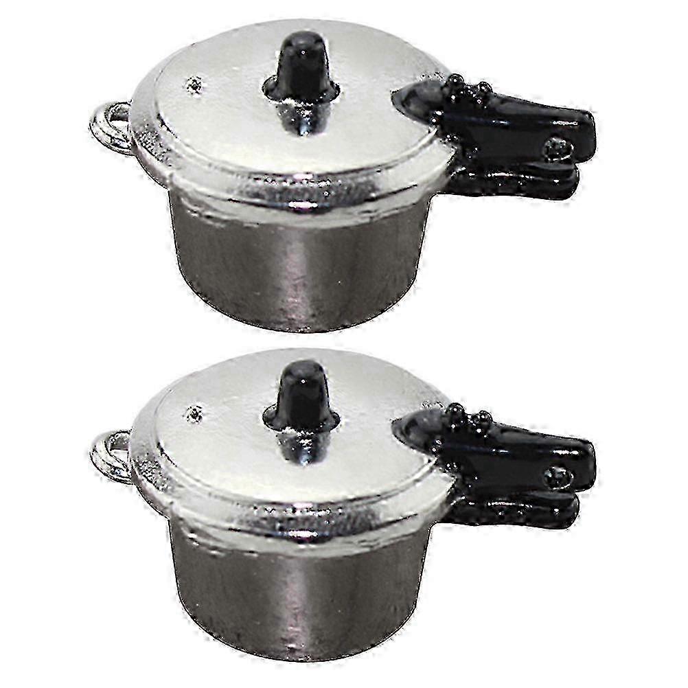 2PCS Mini Pressure Cooker Model Alloy Pressure Cooker Mini House Accessory