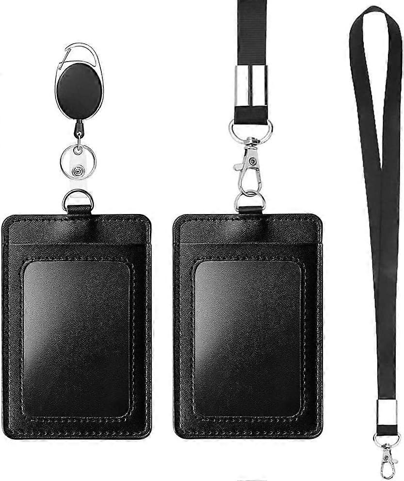 Pieces PU Leather Card Holder Vertical ID Holder with Neck Lanyard Strap for Business