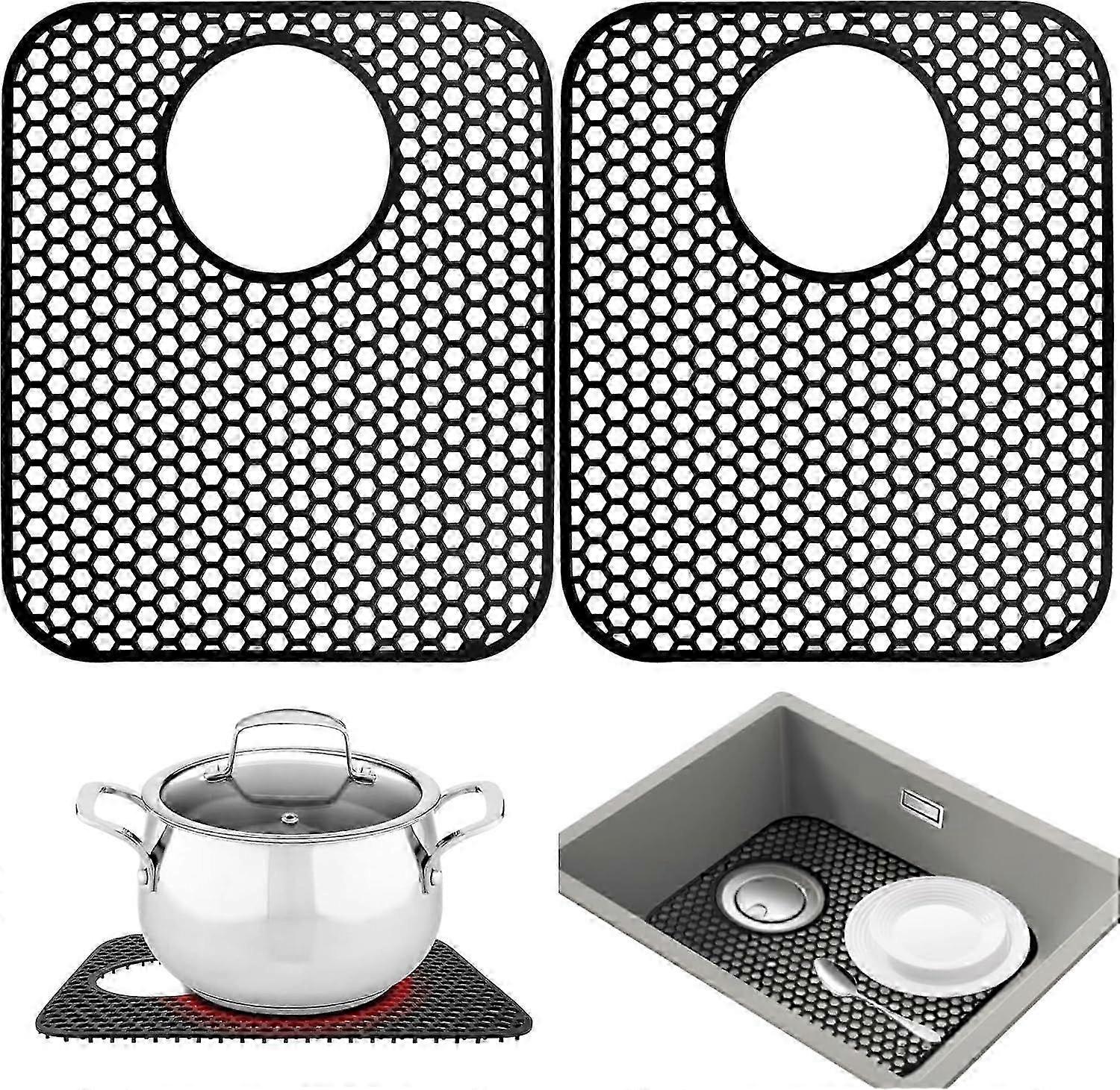 pieces Sink mat, sink mat, draining mat, wash basin mat, rectangular, silicone, 35 x 30 cm, for 40 x 50 cm wash basin, black
