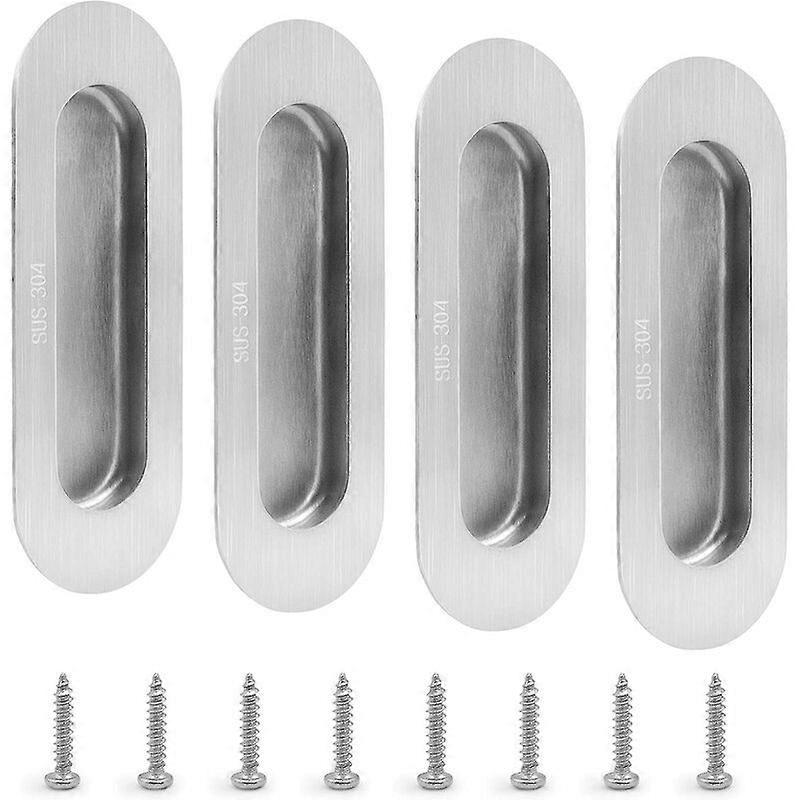 Pieces Sliding Door Handles, Silver Invisible Door Handles, Brushed Stainless Steel Recessed Oval Handle for Drawers, Cabinets, Dressing Tables - 120