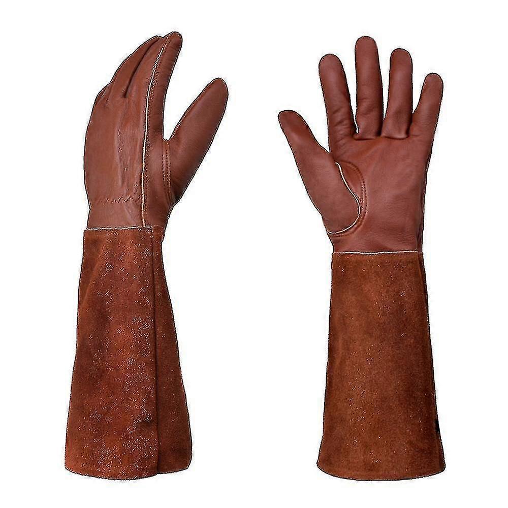 Leather Gardening Gloves With Forearm Protection, Prick Resistant Long Rose Trimming Gloves
