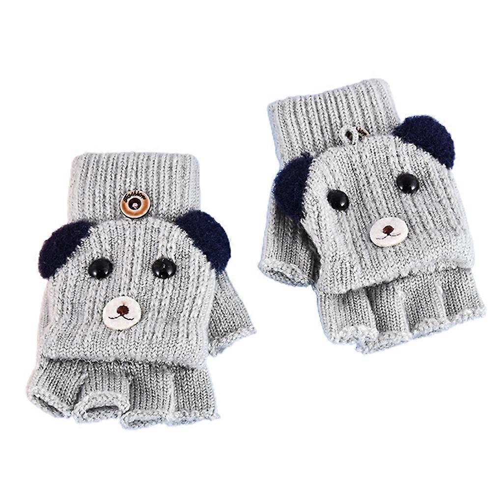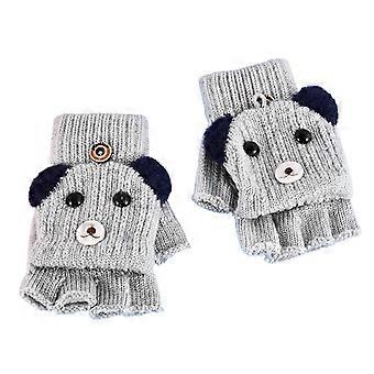 Cartoon Dog Gloves Winter Warm Gloves Knitted Half Finger Gloves with Flip Top