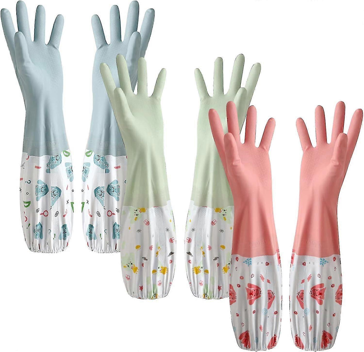 Rubber Cleaning Gloves, Dishwashing Gloves, Latex Free Kitchen Gloves, Cotton Lined Long Sleeve Household Gloves for Laundry, Gardening (Size M)
