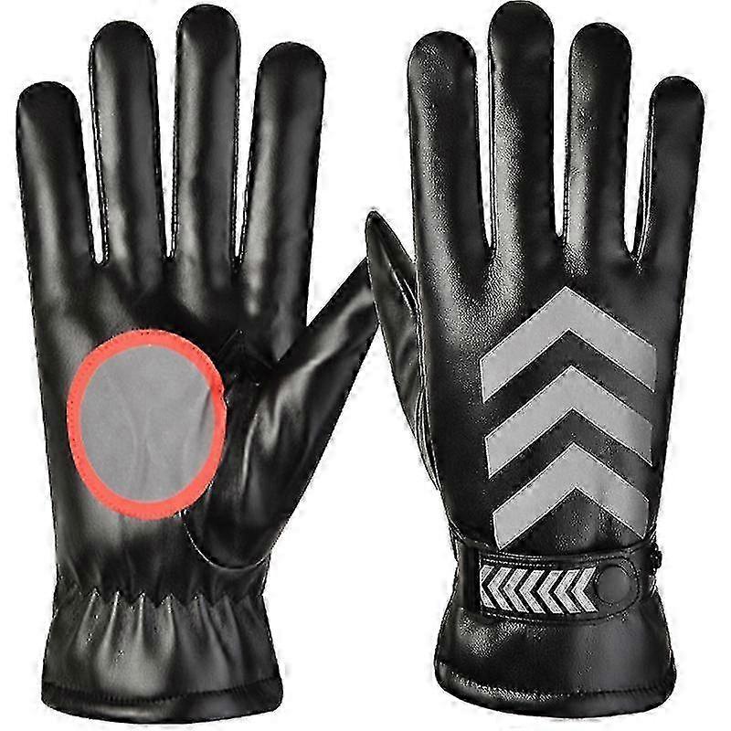 JiaWei Men's Pu Warm Gloves Slip Resistant Padded Water Resistant Reflective Touch Screen Gloves #black w1G