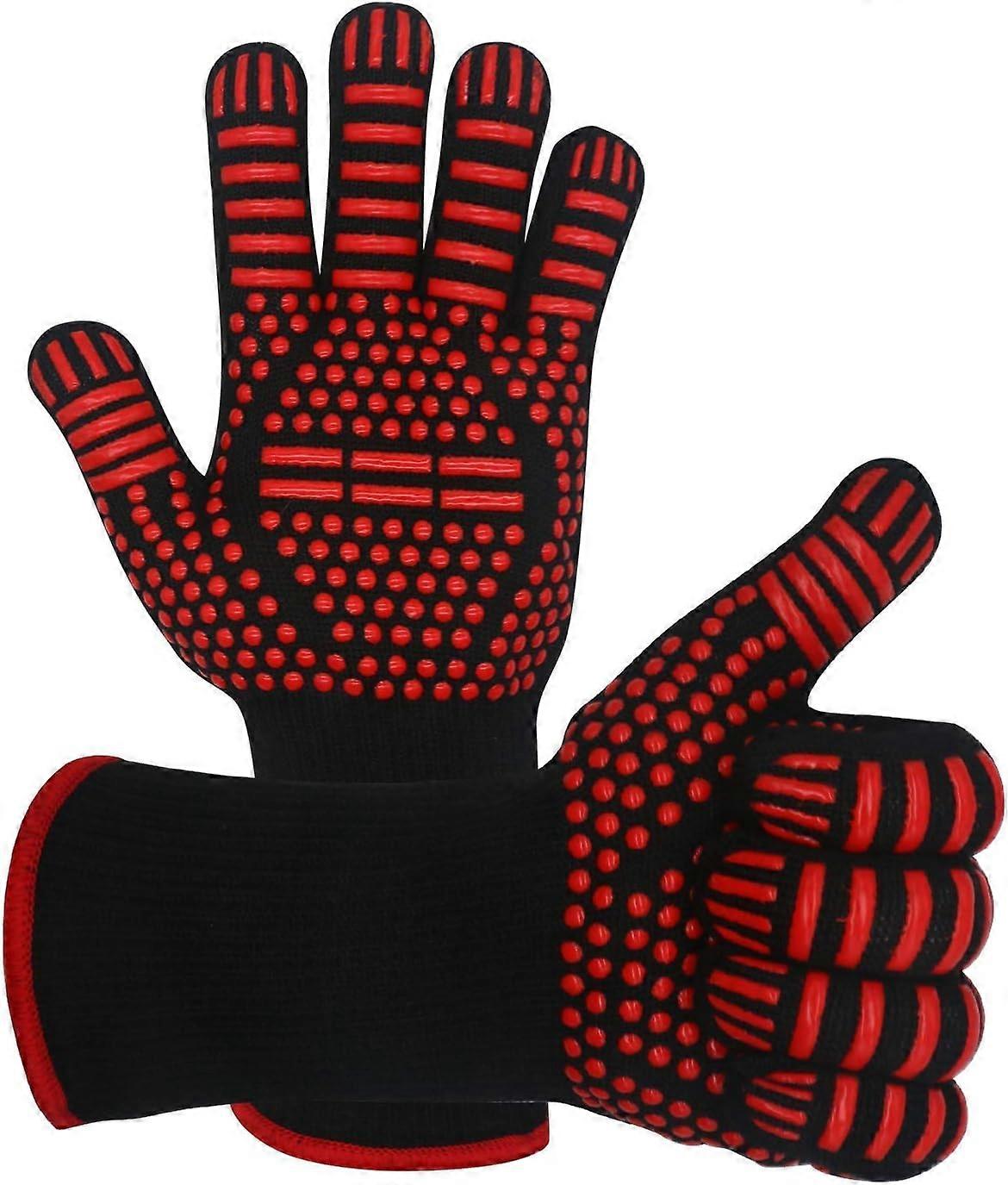 BBQ Gloves 800C Heat Resistant Grill Gloves Fireproof Barbecue Grilling Potholders Silicone Non-Slip Oven Mitts for BBQ, Cooking, Baking, Grilling, We