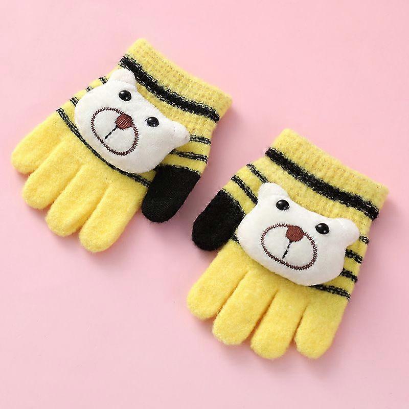 Lovely Striped Gloves Cartoon Knitted Gloves Winter Warm Full Finger Mittens