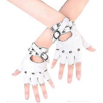 Women's Pu Leather Punk Gloves (white) Studded Strap Or Buckle Half Finger Performance Gloves