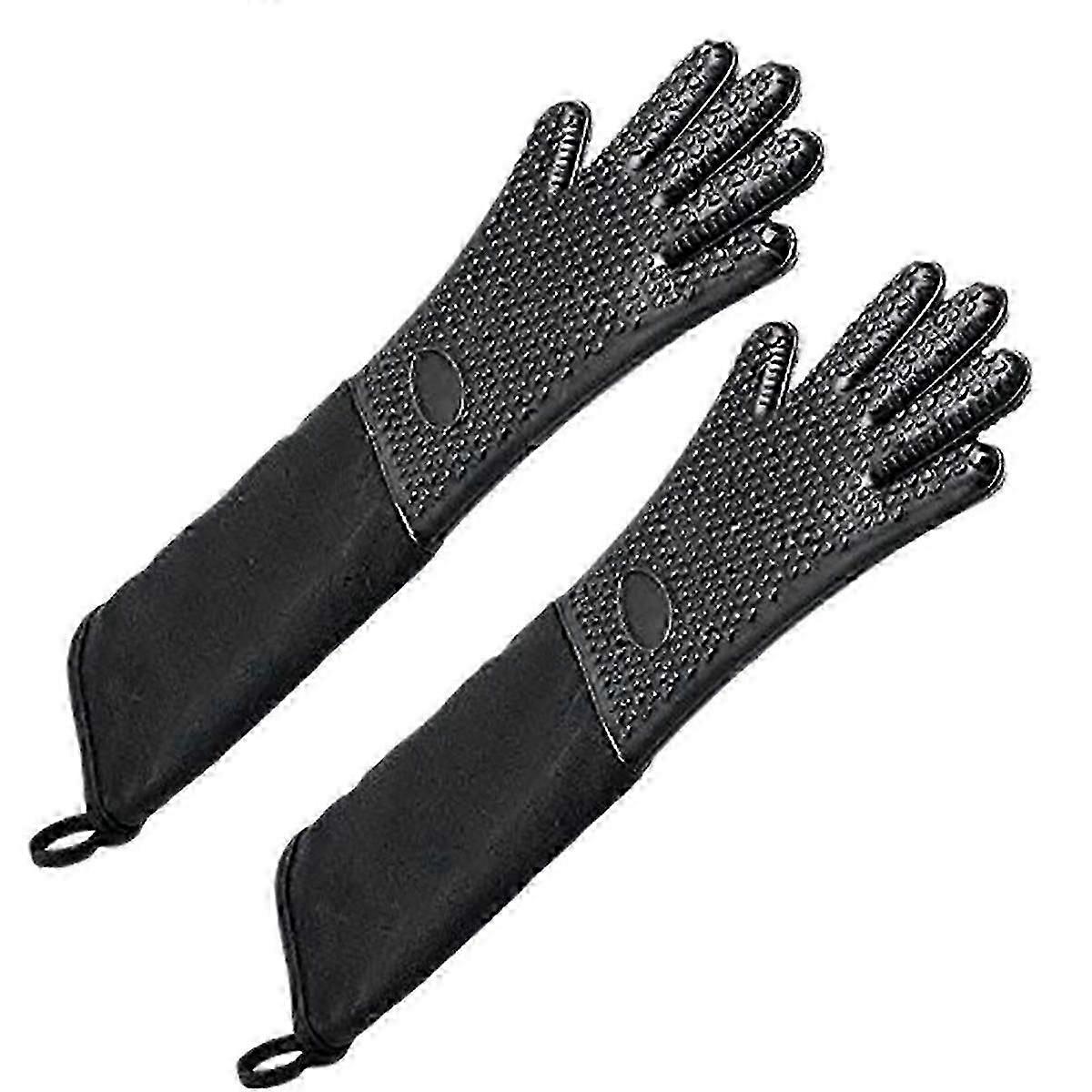 Extra Long Professional Silicone Oven Mitt, Heat Cooking Glove With Internal Cotton For Kitchen,Bbq,