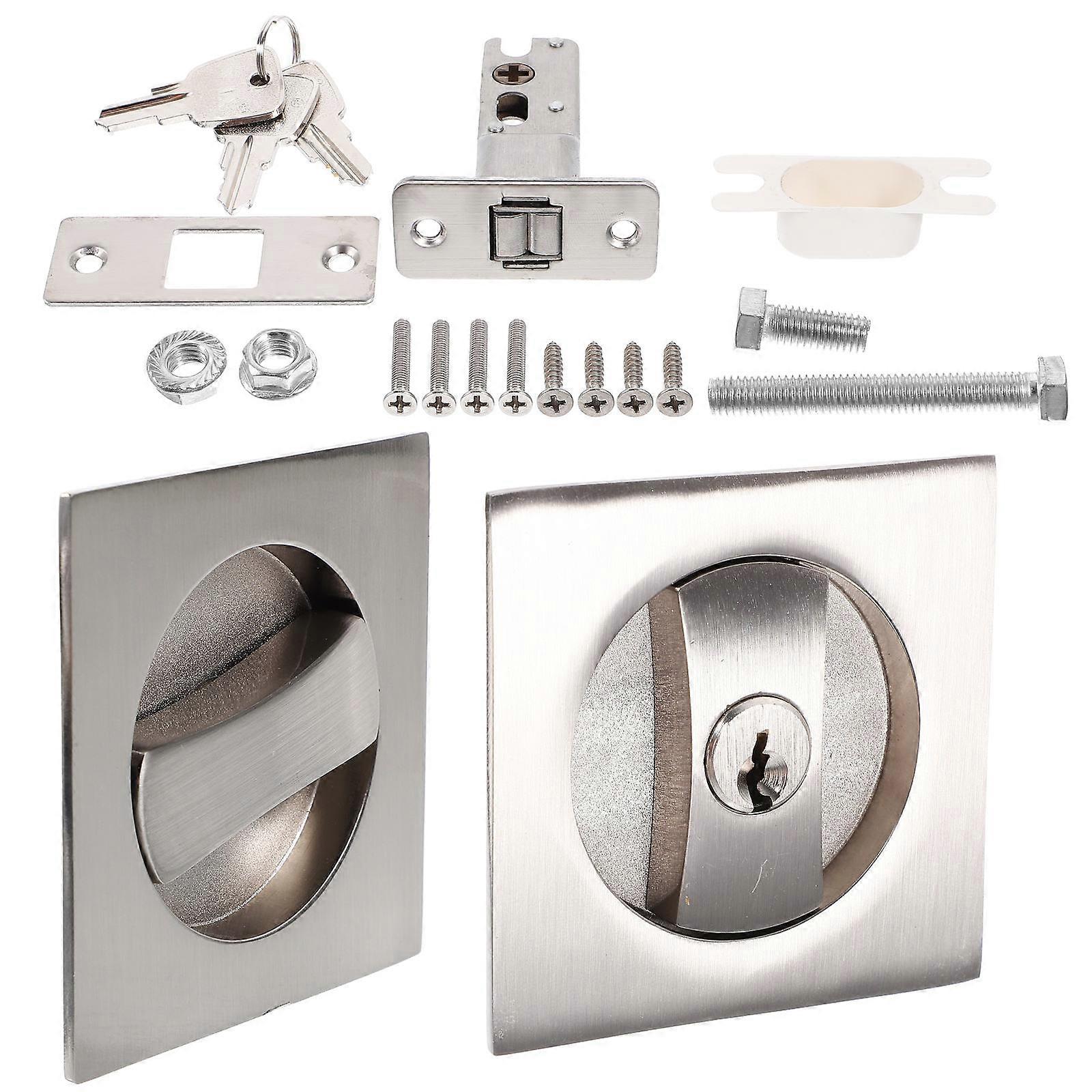 Privacy Latch Lock with Key for – Durable Invisible Pocket Door Lock with Wide Knob for Bedroom and Bathroom Security