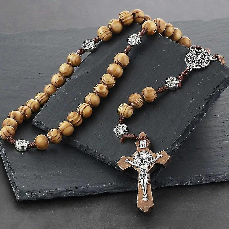 Religious Wooden Antique Cross Rosary Pendant Necklaces Jesus Saint Benedict Beaded Necklace For Men Women Jewelry Gifts Collar-Good-Yvan