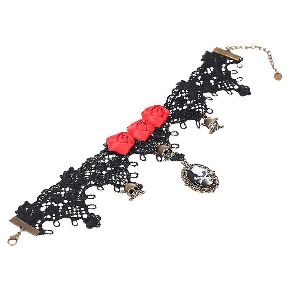 Choker Neck Jewelry Lace Skull Design Alloy Necklace for Halloween Party Black