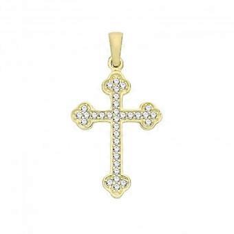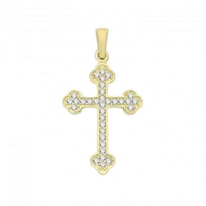 9ct Yellow Gold Zirconia Budded Cross Pendant PN1309