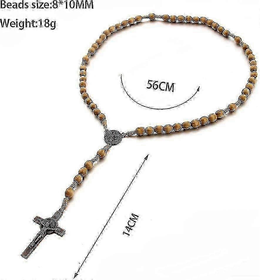 Catholic Cross Rosary Necklace, Natural Wood Prayer Beads With Medal Cross( Light Brown),hw