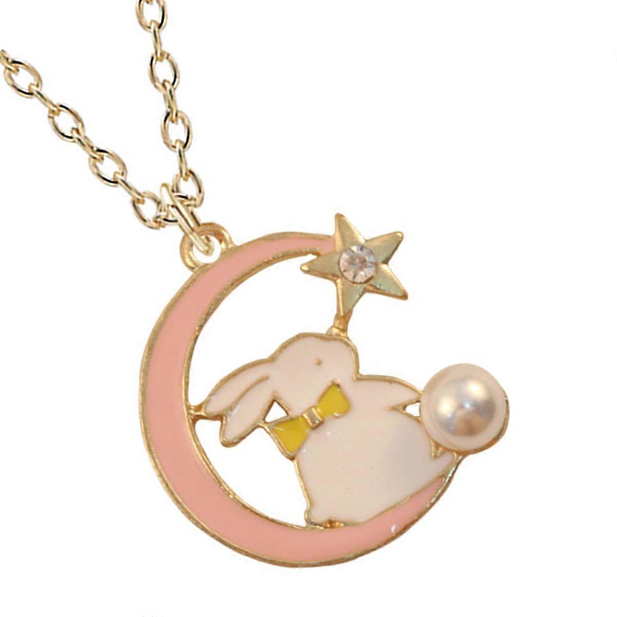Animal Moon Necklace Cartoon Rabbit Pendant Necklace Kids Jewelry School Activities Pink 45CM Classic 1Set
