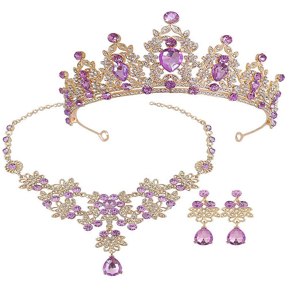 Bridal Tiara Necklace and Earrings Jewelry Set for Wedding 4Sets