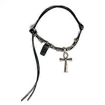 Leather Rope Titanium-Steel Necklace Cross Pendant Choker Long Sweater Chain