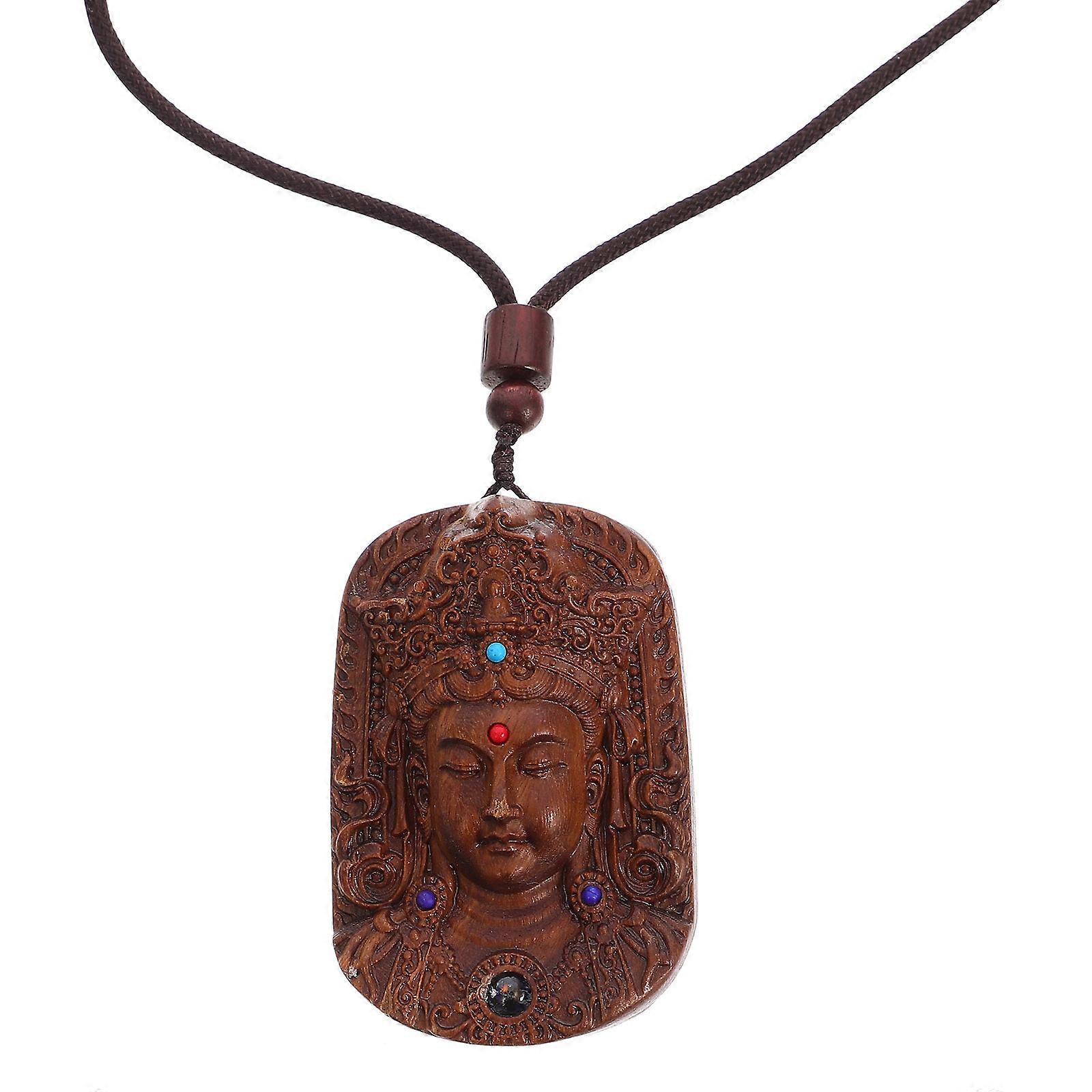 Carved Craft Pendant for Decor Wooden Buddhist Pendant Brown
