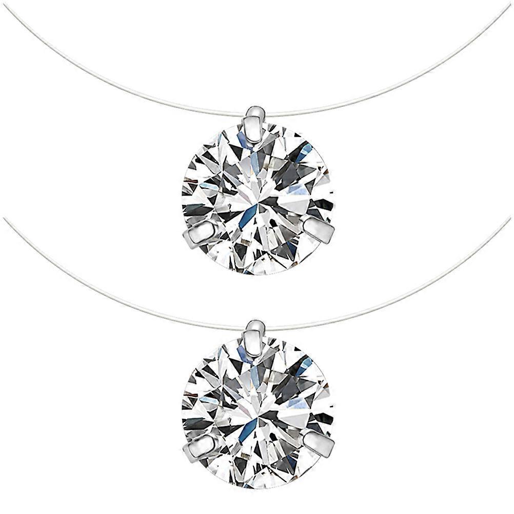 Dainty Zircon Necklace Elegant Design Invisible Fish Wire Daily Wear Silver 0.80X0.80X0.50CM 2Pcs